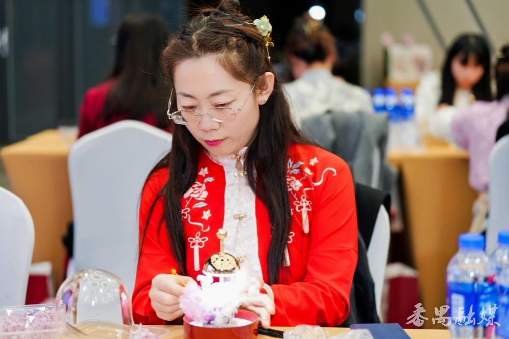 在“巧手匠心·点亮未来”永生花台灯制作活动上,来自片区中小学、幼儿园的百余名教职工身着汉服或新中式服装,衣袂翩跹间尽显东方美学韵味。在专业花艺师的指导下,大家巧手翻飞,将永生花与光影艺术相融,于方寸灯罩间构筑出春意盎然的诗意画卷。这些台灯不仅承载着教职工们的智慧与创意,更寄托了她们对美好生活的向往与追求。手捧亲手制作的台灯,参加活动的一位年轻教师感慨:“这盏灯将摆在我的办公桌上,提醒自己永远做学生成长路上的点灯人。”